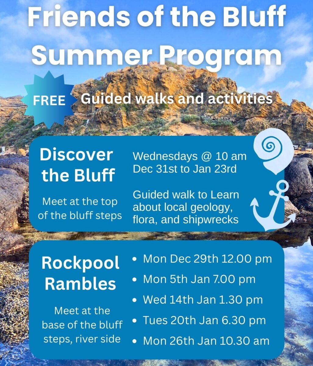 For the rockpool rambles, please dress appropriate to weather conditions, apply sun protection and wear sturdy footwear, as you will be walking on rocks that could be slippery or sharp (no thongs or bare feet please).